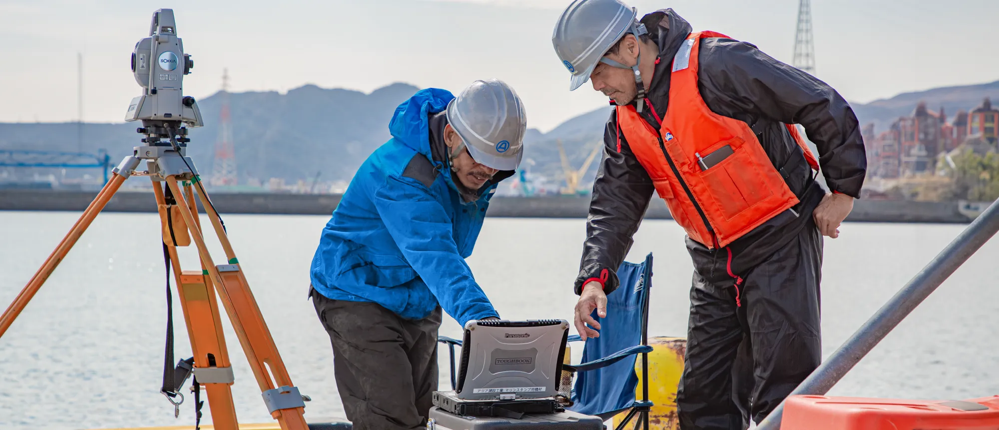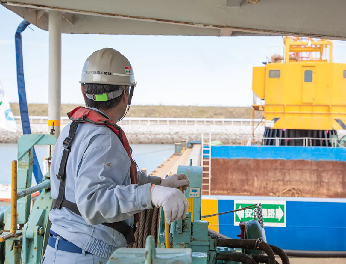 当社の創業は昭和20(1945)年。歴史とともに紡いできたのは、優れた技術力と人間力、そして「人」「まち」を支えてきた豊かな実績。これまでの積み重ねを大切にしながら、時代の流れに沿った変化をためらわず、港湾工事で生活・産業を支えています。