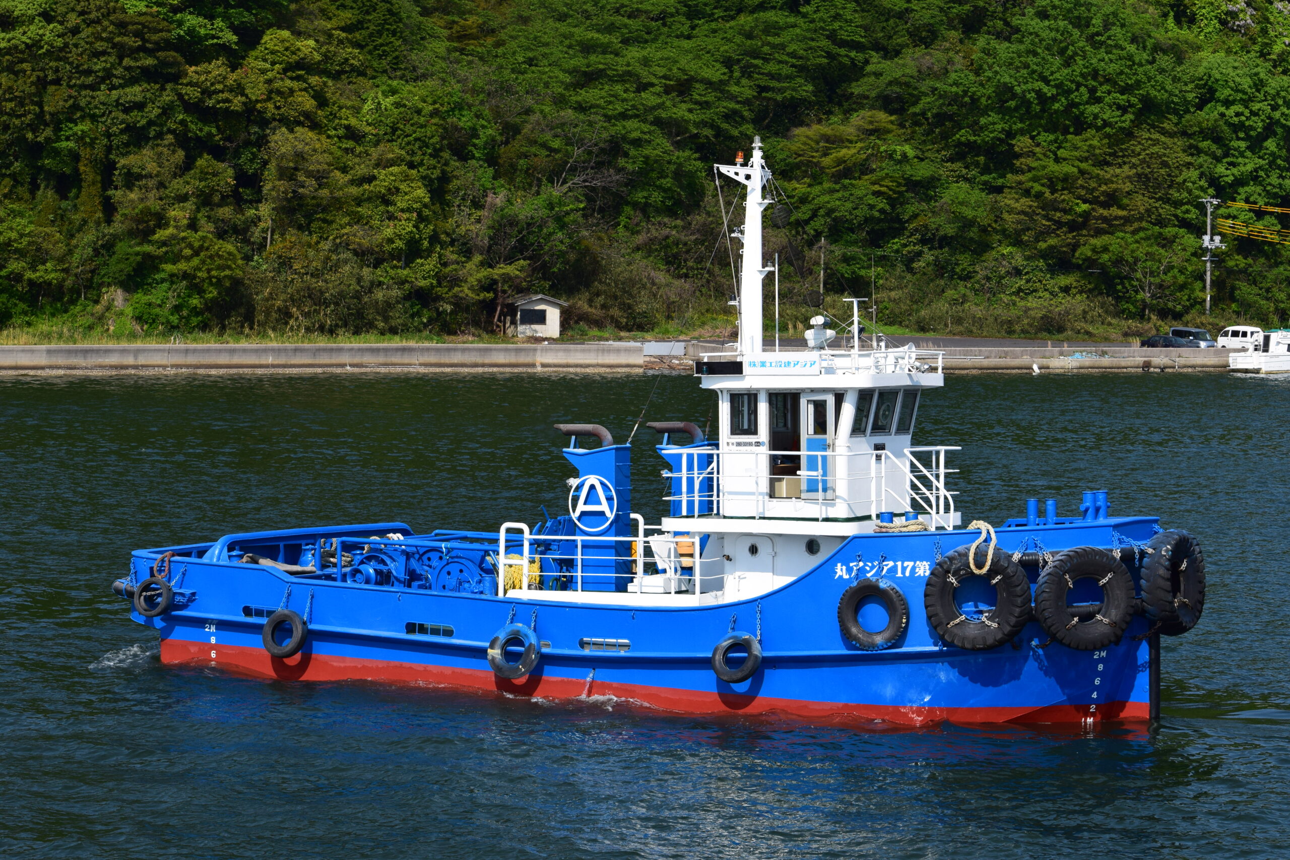 ホーム保有船舶一覧第17アジア丸 第17アジア丸 アジア建設工業 保有船舶 押船兼引船 Pusher and tug boat 主要諸元表 船体寸法長さ14.0m幅5.40m深さ1.95m吃水1.4m総トン数19.0t作業能力主機馬力550PS×2基(1,100PS)最大航海速力10.0KT航行区域限定沿海ロープリールUHW2000 2.0t×1基 Φ60×200m連結ウインチUHW4000 4.0t×2基 Φ26×30mブレーキ力10t最大搭載人員8名 その他の保有船舶 fleet 保有船舶一覧へ