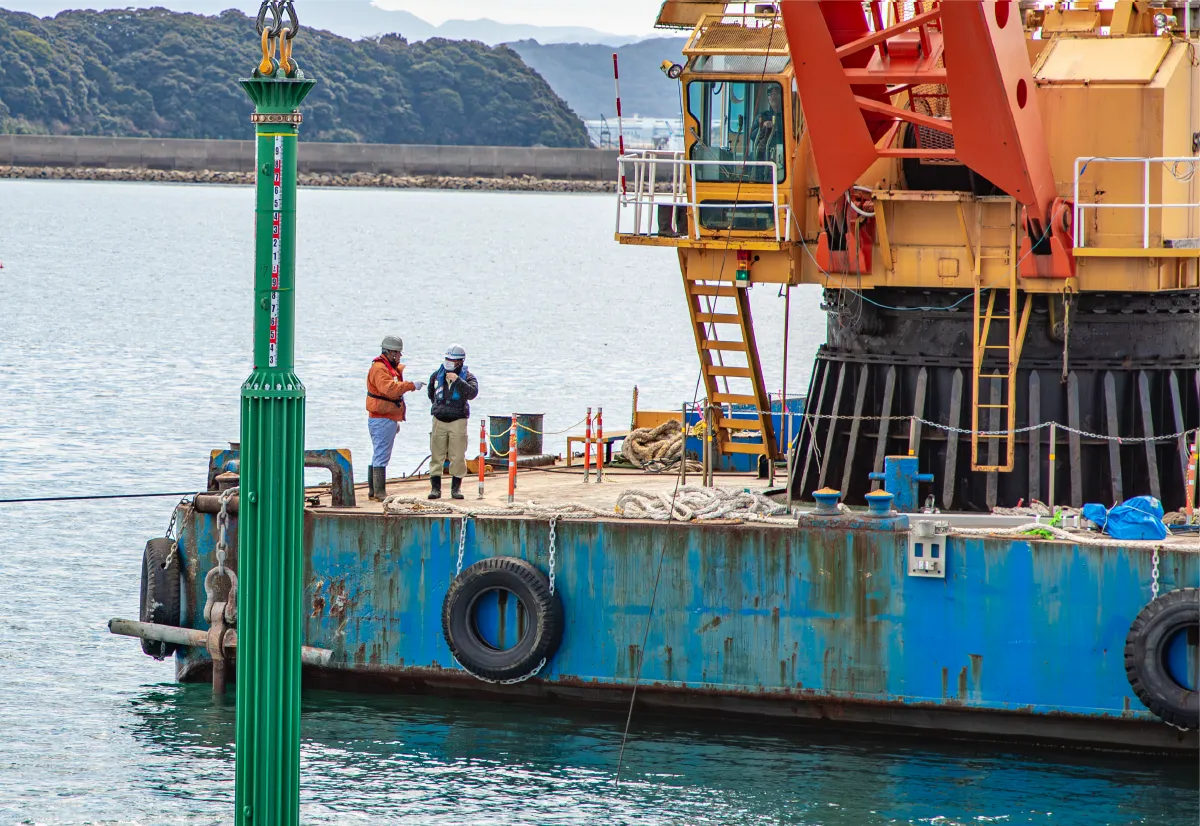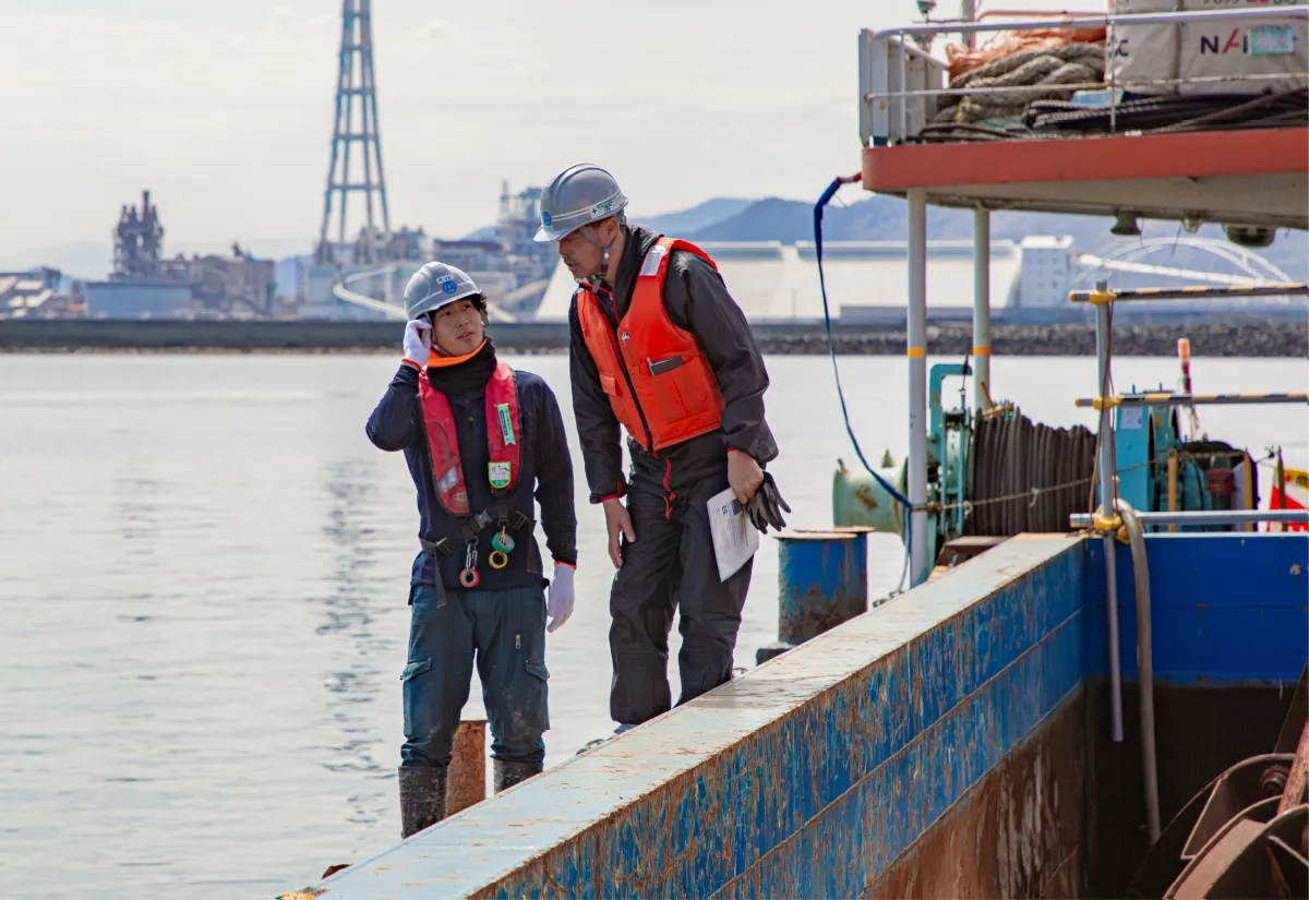 港湾土木の多くは海上で行われ、自然の影響を受けることが多いです。苦労もしますが、工事を終えたときの手応えは格別。特に港などの整備に関わる仕事は、社会に貢献している実感も得られます。工事によっては作業船の上で寝泊まりすることがあり、社員同士の距離が縮まります。先輩・後輩の垣根がなく、和気あいあいとした雰囲気。安心して仕事に注力できる職場です。