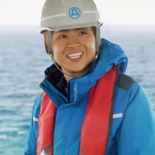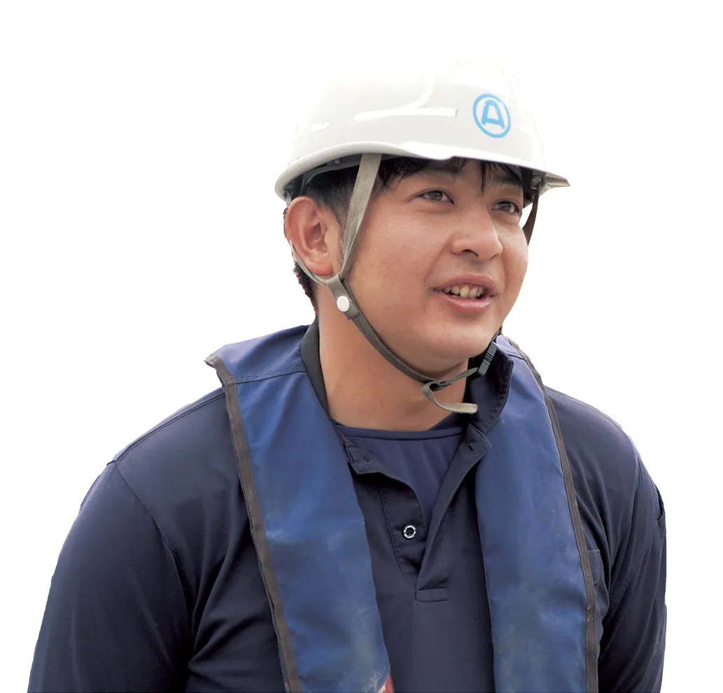 他県の海洋土木系企業からのキャリア採用です。協力会社としてアジア建設工業の現場に関わる中で、社員がイキイキと働く姿に惹かれました。社内は風通しがよく、コミュニケーションが活発。最新のICT技術が活用できる面白さとともに、新しい技術を皆で協力して学び、壁をつくることなく教え合い、一丸となって挑戦していく雰囲気を日々感じています。
