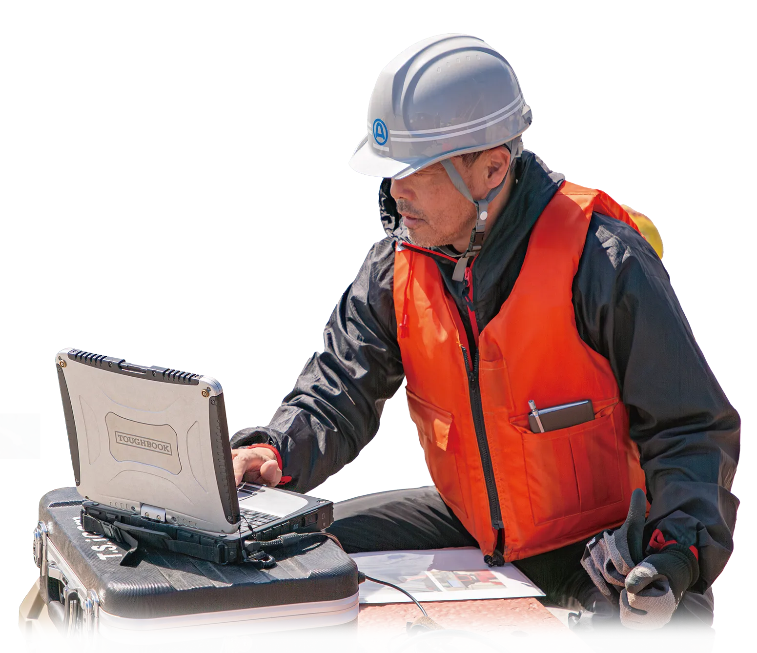 県や国による港湾関係の公共事業や、海洋土木を専門とする大手マリコン(マリンコントラクター)企業からの請負工事が主な事業です。クレーンやバックホウなどを搭載した作業船を多数揃え、海上での港や防波堤などの施工だけでなく、氾濫防止のための河川工事、湖沼の環境修復など多様な工事に対応。ICT施工技術やアプリケーションの開発も行い、特許を取得しているものもあります。最先端の技術を活用するとともに、重機を操作しながら港湾工事のダイナミックなスケールを感じられ、インフラ事業ならではの満足感を得られるのが当社の特徴です。